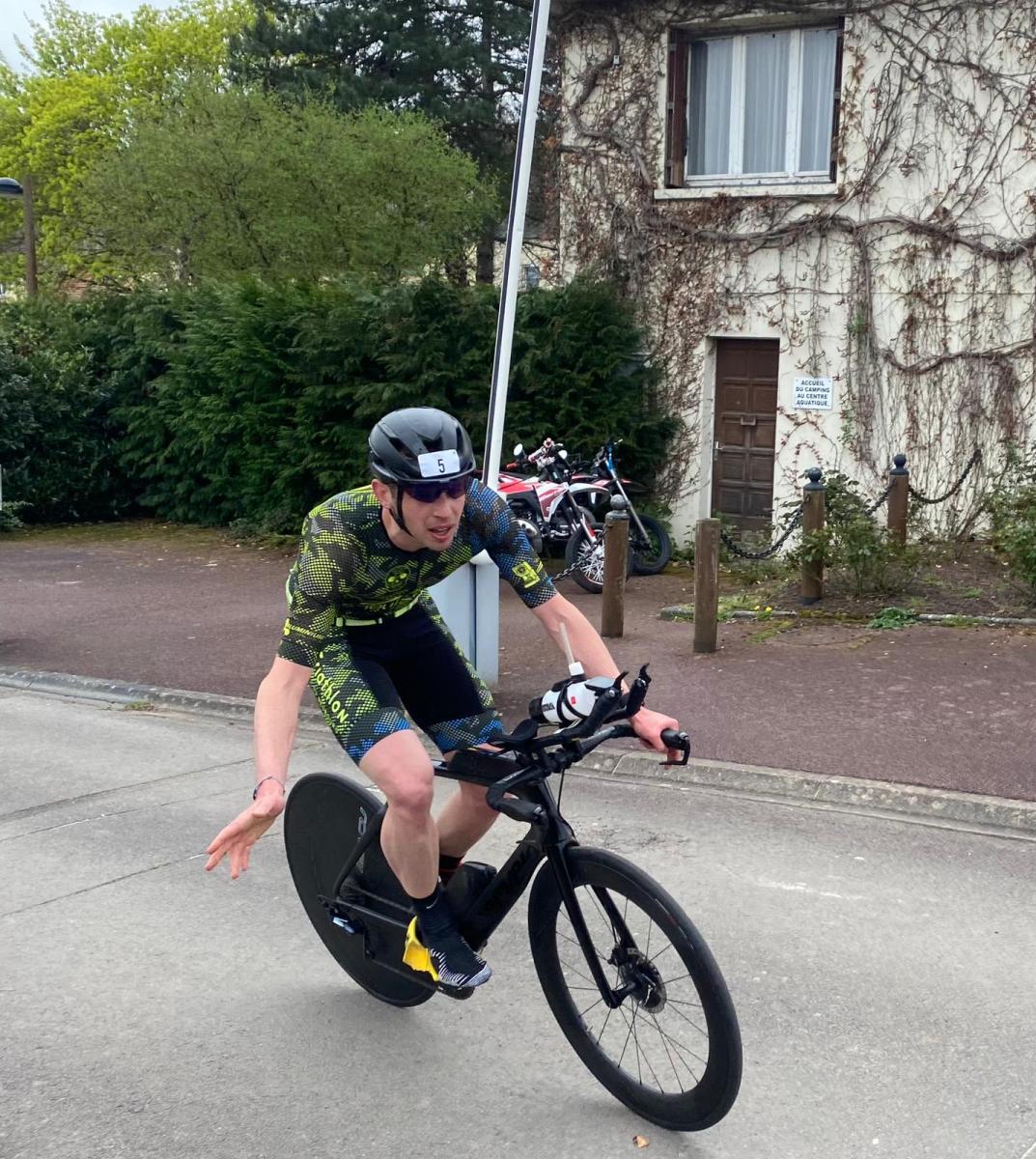 Il a fait la course en tête de bout en bout sur cette course au format S : 5 km de course à pied, 23 km de vélo à travers la Suisse Normande et enfin 2,25 km de course à pied.