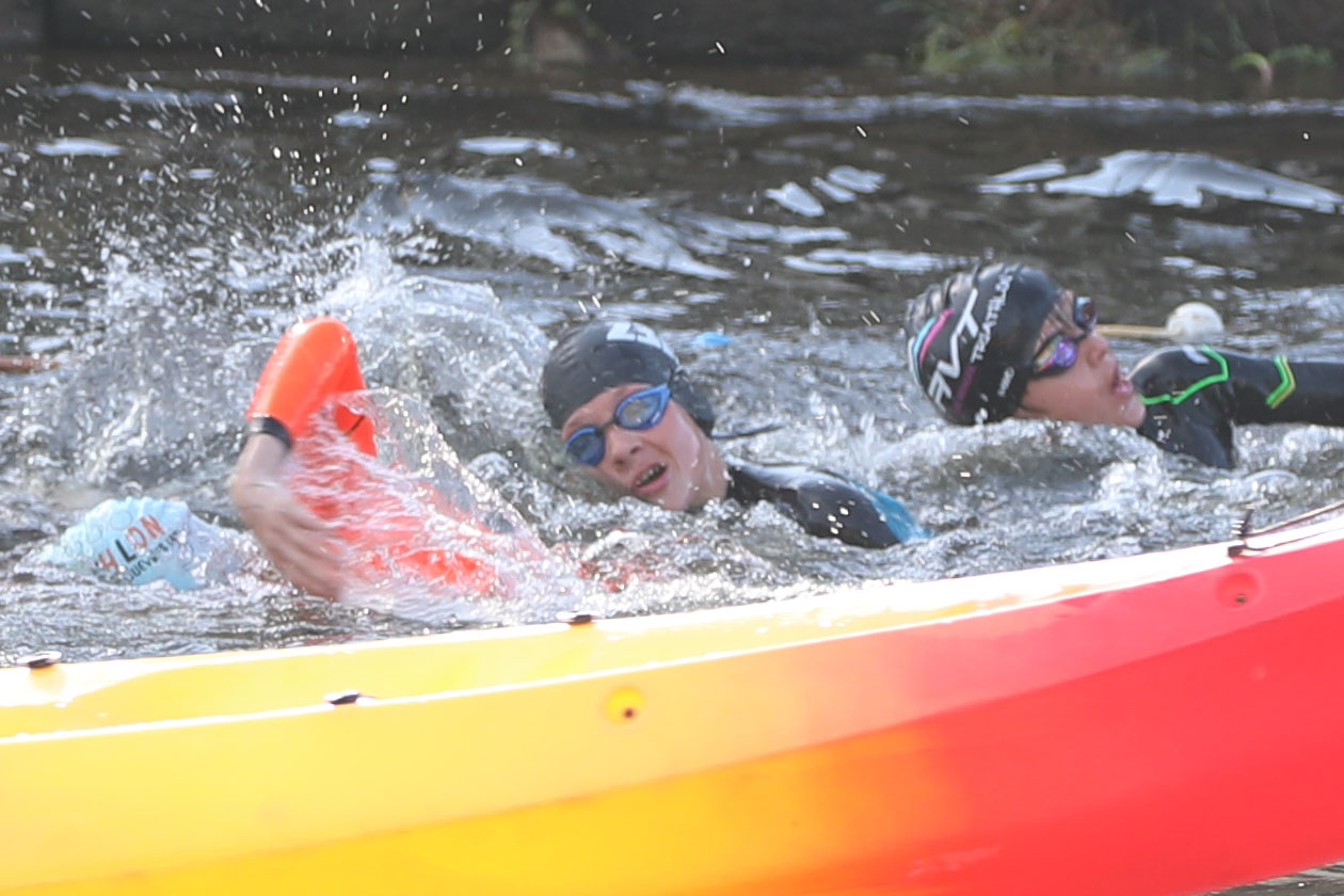 Sorti 36e de l’eau après un virage très [trop] large à la bouée de cet aller-retour en rivière à 13.3°, il remonte 16e en vélo (10 km) puis 12e à l’issue des 2.5 km de course à pied.